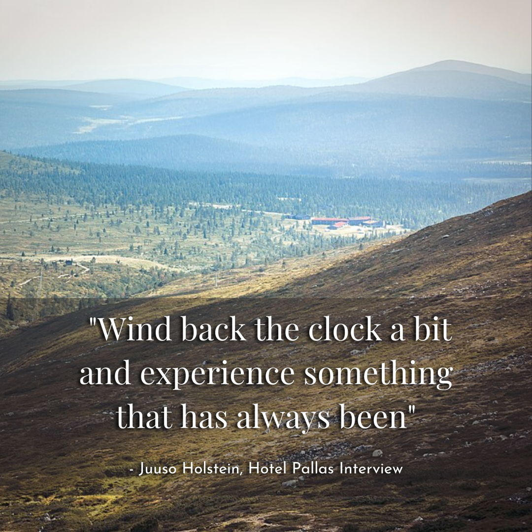 Tommy: “We left our luggage at the Pallas hotel and had a wonderful Lappish meal right after. Aaro told me about the history of the place and it fascinates me how much the area has gone through yet how beautiful it is. We’re now out exploring Pallas, hiking to the peak of Taivaskero. Surrounded by the breathtaking views, I finally remember to breathe mindfully. The lovely scent of nature helps me relax."