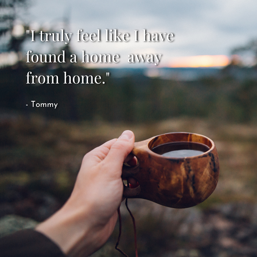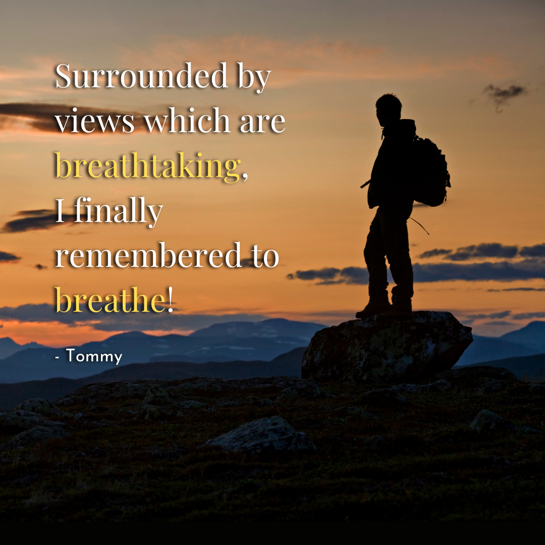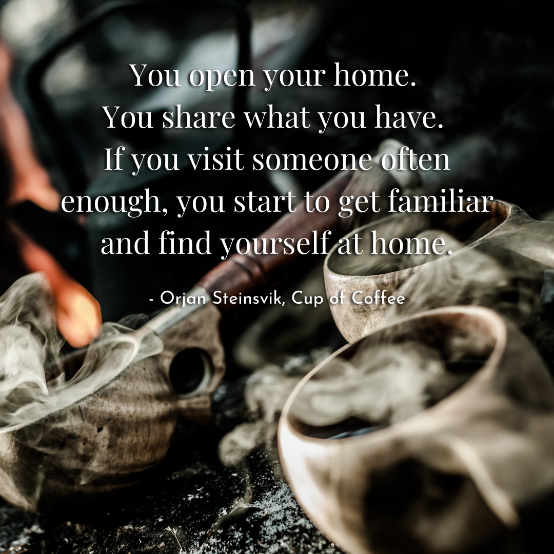 Tommy:"We're having a coffee break with the Swedish and Norwegian travellers we met on our hike. I've quickly learned the importance of coffee here. And while I do miss the tea from back home, there’s something special about fresh campfire coffee. I feel recharged chatting with the others and listening to their stories. I think I’ve found a home away from home."
